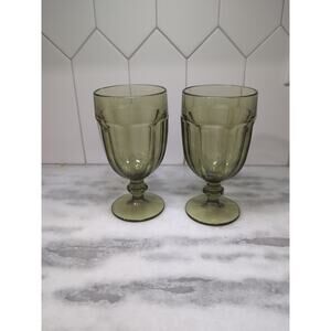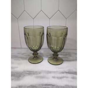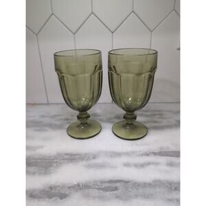 Libbey Gibraltar Olive Green Goblets Set, Vintage Glassware Pair, Mid-Century