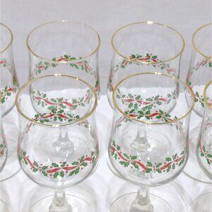 Libbey Holiday Christmas Wine Glasses w/ Gold Trim Holly Berry Design Set of 8