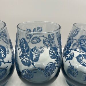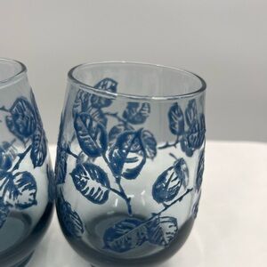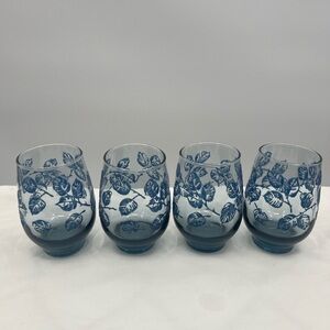 Libbey Juice Eventide Glasses Painted Blue leaves Set of 4 Vintage