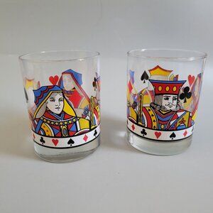 Libbey King & Queen Set Of 2 Vintage Playing Card Theme Lowball Glasses