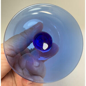 Libbey Metropolis Cobalt Blue Set of 3 Margarita Glasses Bubble Stem Barware Bar. 6" tall x 1.5" diameter mouth. No chips, no cracks. Some bubbles in the glass. Unmarked.