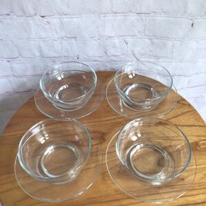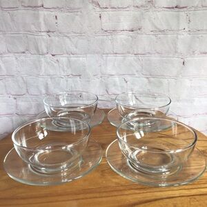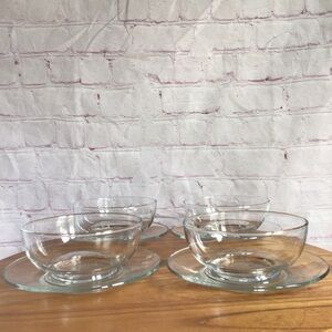 Enhance your dining table with the Libbey Moderno Clear Glass Bowl and Plate Set, featuring classic pieces perfect for any meal. These transparent glass bowls and plates boast a simple, timeless design that complements any table setting. Ideal for serving desserts or small dishes, they offer both style and practicality. Each plate measures approximately 6 1/4” in diameter. Each bowl measures approximately 4 3/4” in diameter, 2” deep. Great condition. No chips, cracks or repairs. Smoke free home.