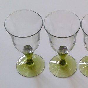 Vintage Libbey Martello Olive Green-stemmed 12 oz Wine Glasses/Water Goblets. Cups are smooth and clear with no coloring, while stems are textured and olive green. Excellent, used condition with no chips or cracks! Some minor scratches may be present due to previous use. Perfect for a holiday dinner table or everyday use!