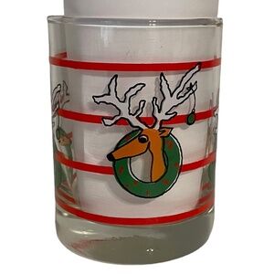 Libbey Reindeer in Christmas Wreath Double Old Fashion Tumblers Glasses Set of 4