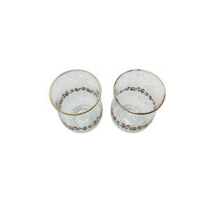 Libbey Set Of 2 Vintage Holly & Berries Gold Rim Glass Tumblers