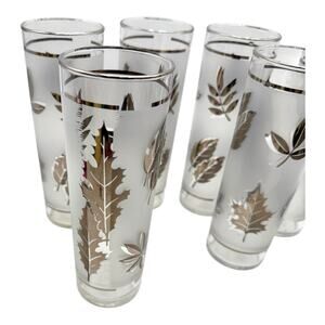 Libbey Silver Leaf 7” Tom Collins Glasses Tumbler Set of 6 Frosted Vintage 1960s