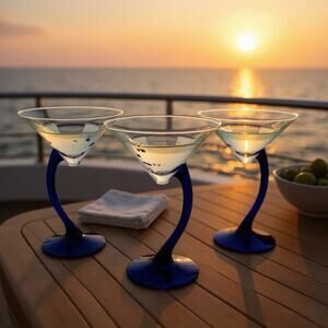 The Libbey Swerve Cobalt Blue Stem Martini Glass Set of 3 is a vintage collection of hand-blown glassware designed for all occasions. These decorative and original pieces stand at 6.5 inches tall and feature a stunning cobalt blue color, making them perfect for adding a touch of elegance to any drinkware collection. The set is crafted with attention to detail and production style, ensuring a unique and high-quality addition to your barware.