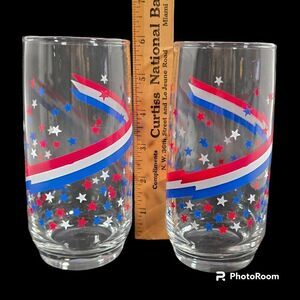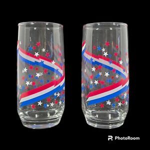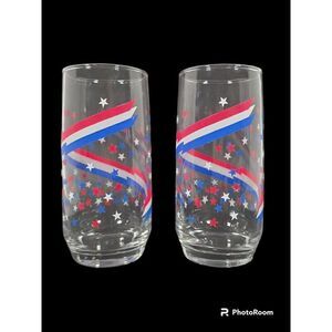 Libbey Vintage 70's Glasses Patriotic Stars & Stripes Red White Blue Set of 2