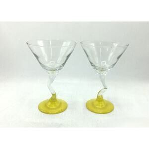 Set of six martini glasses with a different colored "Z" (zig-zag) stem base / original box.