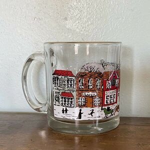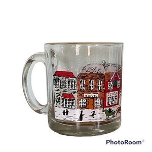 Libby Coffee Mug Frosted With Winter Scene. Gold Rimmed. Heavy, Quality Glass!
