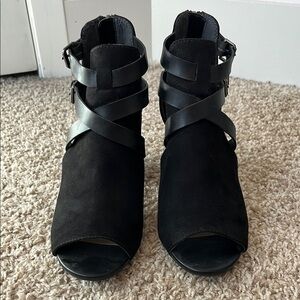Libby Edelman Karla Open Peep Toe Strappy Heeled Bootie Womens Size 9