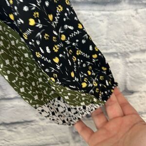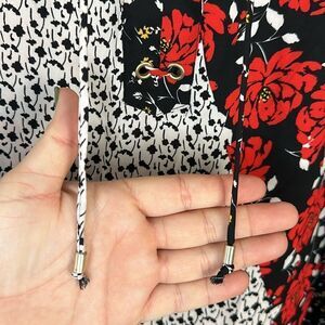 Libby Edelman Mixed Patchwork Floral Lace Up Front Long Sleeve Blouse Size Large