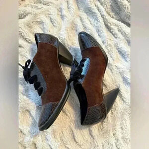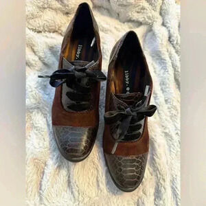 Libby Edelman Perrin Brown Suede & Leather Lace Up Heels Size 6