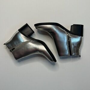 Libby Edelman silver ankle boots. 100% man made leather. Ankle zippers. 2” heel. Womens size 8. New without tags, never worn. No box.