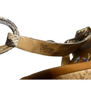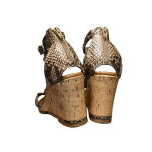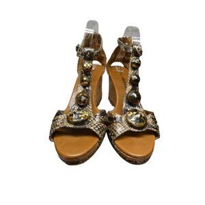 Libby Edelman Woman’s Jeweled Snakeskin Wedge Heel Sandals Tan Beige 9.5 W