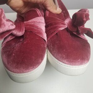 Libby Edelman Women's Caityln Velvet Mauve Deep Pink Bow Sneakers Sz 9. Some wear to soles and a imperfection to side of right shoe. See photos. Otherwise, in good pre-owned condition.