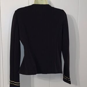 Libby Edelman black knit ribbed jacket with gold buttons & trim