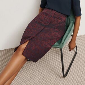 Libby London Chester Jacquard Skirt Career Pencil Navy Burgundy UK 12 US 8