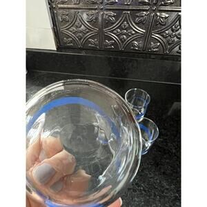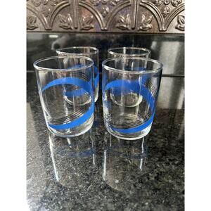 Libby MCM Glasses Juice Cups Blue Black line Swirl Set of 4 Vintage