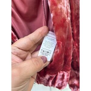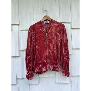 Libby Story Womens Velour Zip Front Jacket Red Long Sleeve Ruched Back Size S