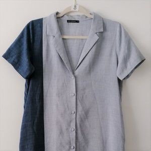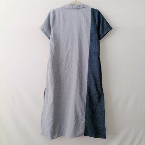 Libe Workshop Womens Gray & Blue Short Sleeve Collared Shirt Dress Size M