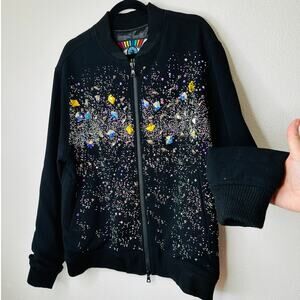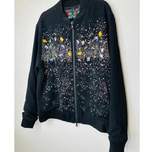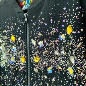 Libertine Black Rhinestone Multicolor Encrusted Zip Jacket XL