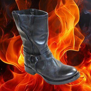 Liberto Black Vintage Style Leather Harness Mid-Calf Moto Boot, Size 37 …