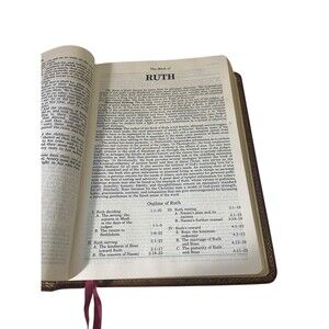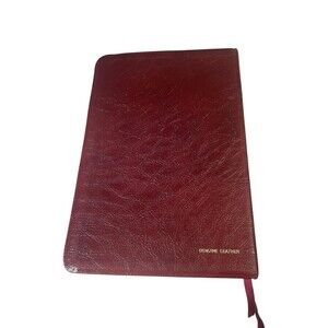 Very nice condition. Printed 1988. Red letter, study helps and map. Genuine leather. Label blackened out on inside cover.