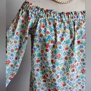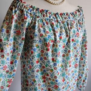 Liberty Art Fabric Tana Lawn Peasant Off The Shoulder Shirt Edenham Floral Sz 4