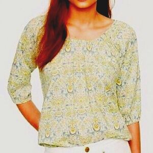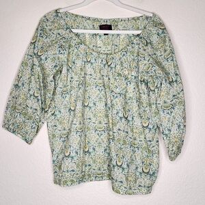 Liberty Arts Fabrics J. Crew Green Floral Cottage Core Peasant Top S