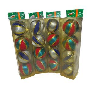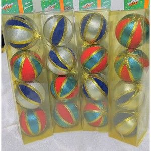 Liberty Bell Christmas Satin Striped Balls Tree Ornaments NOS Lot of 4-4pk (16).
