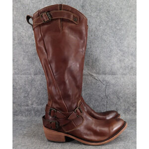 Liberty Black Boots Womens 9 Western Riding Cowboy Brown Leather Distressed Buckle Harness Side Zip Handcrafted Goodyear Welt
