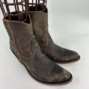 Liberty Black Snakeskin Studded ankle boots US 10.5 Brown R-Toe Western Cowboy