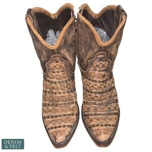 Liberty Black Vintage Canela Studded Leather Boots Brown Distressed Booties