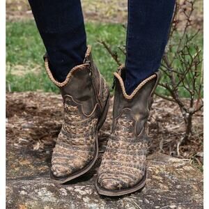 These handcrafted Liberty Black boots bring rustic charm with their distressed leather, intricate stitching, and stud embellishments—perfect for both everyday wear and statement outfits.
