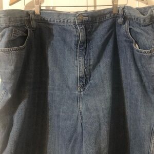 Liberty Blue Big & Tall men’s medium wash 5 pocket denim shorts. Size 52. Zip and button closure. Belt loops. Embroidered back pockets. Preowned