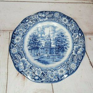 Liberty Blue Original Copper Engravings Of Historic Colonial Scenes Printed On Staffordshire Ironstone Detergent And Dishwasher Safe Made In England Independence Hall Plate