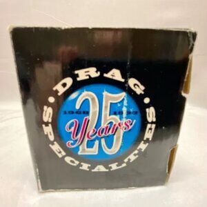 This is a rare and limited edition 1937 Chevy Pick-up Truck from the Drag Specialties 25th Anniversary series by Liberty Classics. The die-cast material and 1:25 scale make it a perfect addition to any collection or a great gift for boys and girls aged 8 and up. The truck features a blue and black color scheme, with personal number plate and advertising specimen. It is a perfect representation of a drag race truck from the 1930s. The vehicle bank is made in China and is recommended for ages 8 and up. Same Day Shipping and packaged with Care.