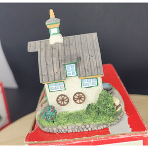 Pre-owned condition. Boxes show wear. Riverside Bath House has a small chip on a tree all other houses are in excellent condition.