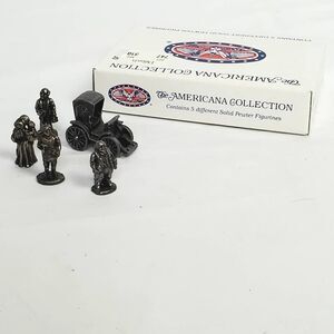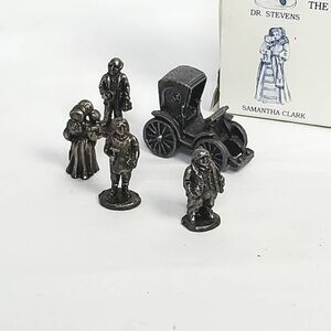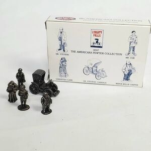 Vintage Liberty Falls Americana Pewter Collection AH47. Includes Dr. Stevens, Samantha Clark, Mr. Cox, Mayor Willie Griffin, and Dr. Stevens’ Carriage. Solid pewter figurines, detailed and collectible. Box included. Approx: 1–2" each.