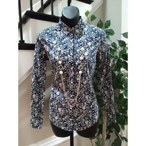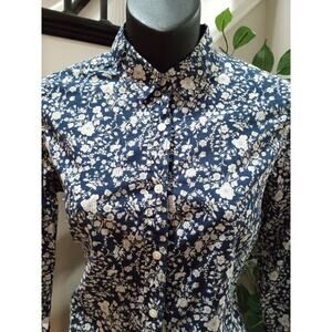Liberty For J.CREW Women's Navy Floral Cotton Collared Button Down Shirt Size 2.
