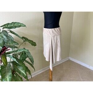 Free People x Liberty Garden faux Suede microfiber patchwork design Asymmetrical Mini Skirt Size M light tan made in the USA.
