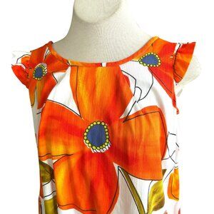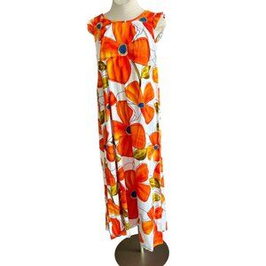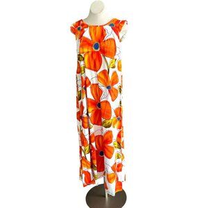 Liberty House Hawaiian Orange Floral Maxi Tiki Hostess Dress Ruffle Sleeve