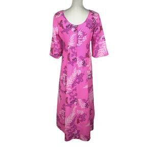 Liberty House Vintage 1970’s Hawaiian Maxi Dress Pink 3/4 Sleeve Size 8