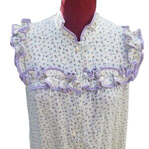 Liberty House of Hawaii Nightgown Mini Floral Sleeveless Ruffles Button Front M