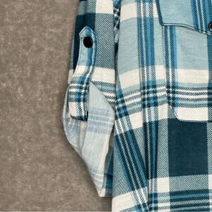 Liberty Love 2X Shirt Top Blue Plaid Button Front Tab Short Sleeve V Neck Knit High Low Lace Back