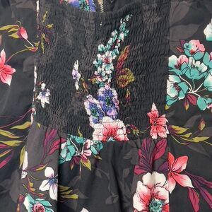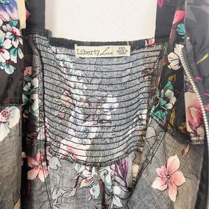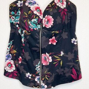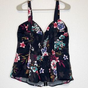 Liberty Love Black Floral Zip Up Fitted Wide Strap Tank Top Plus Size XXL