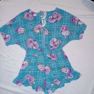 Liberty Love Like New Floral Faux Wrap Back Tie Romper size L