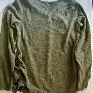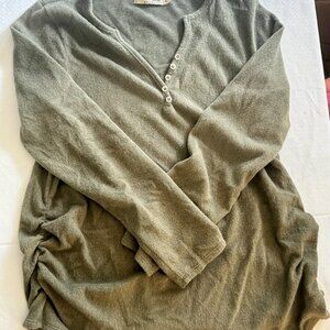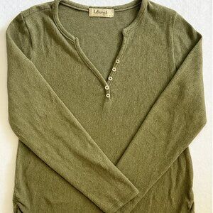 Stay cozy and stylish through pregnancy with this Liberty Love maternity sweater / knit top in size Medium (M). Featuring ruched/gathered sides to accommodate your bump, a soft knit fabric, and a flattering pullover design, this sweater pairs beautifully with maternity leggings, jeans, skirts, or layering pieces. The neutral / olive (insert actual color) tone makes it versatile across seasons.