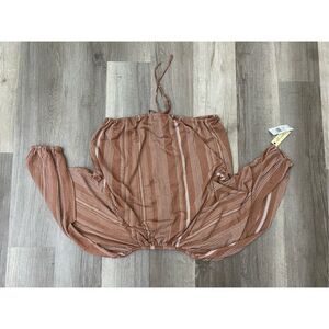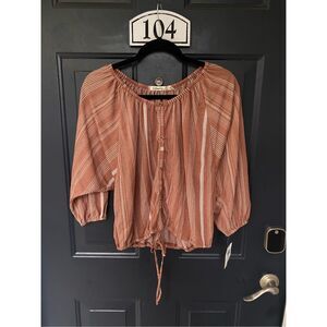 Liberty Love NWT Pink White Stripe Round Neck Blouse, Size Medium